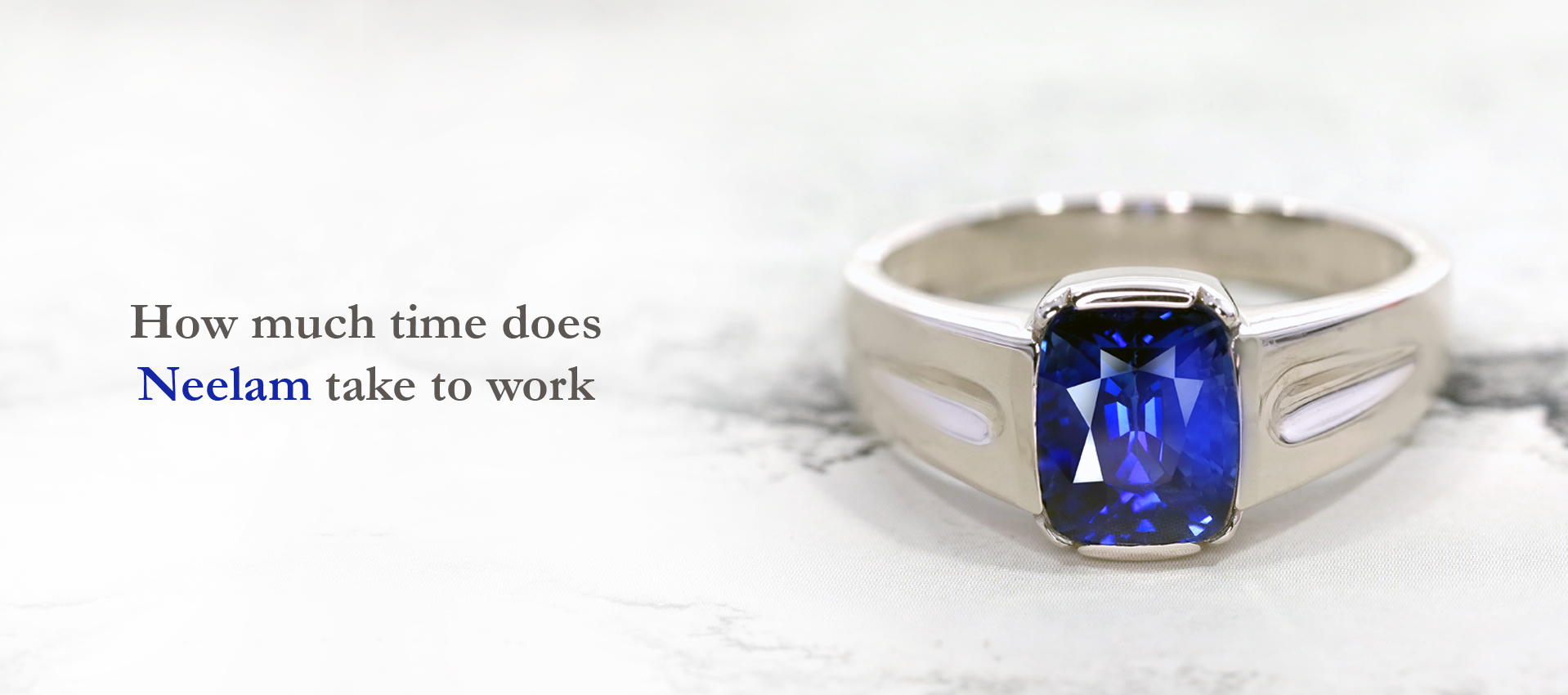 Neelam or blue sapphire, the most powerful gemstone, takes 2 days to 1 week to work in astrology. It is believed that this precious stone is a fast-acting stone, and one can start observing the results just after wearing it. Neelam stone benefits are immense if this stone suits you. However, it might give negative results if its energy is not compatible with yours. Thus, it is important to consult an astrologer before adorning any gemstone for astrological use. Read More Here: Astrological Benefits of Blue Sapphire for Career and HealthGemstone's working also depends upon various factors....