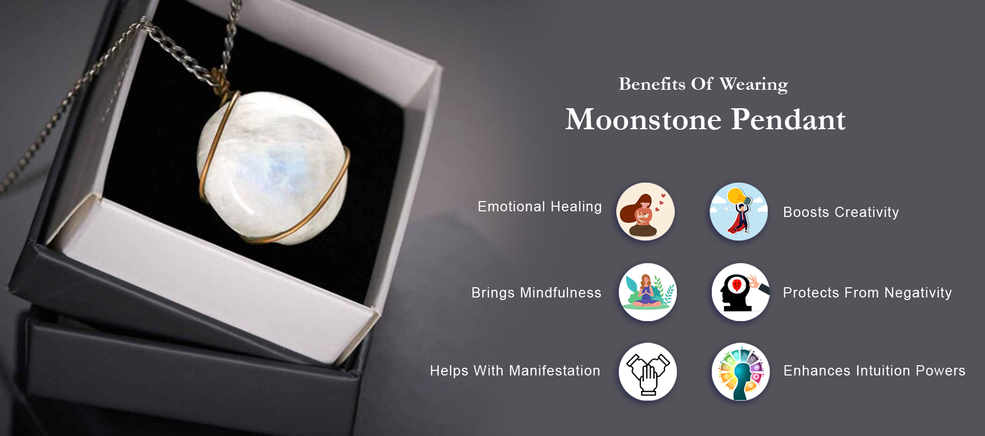Moonstone, (aka Chandramani) the beautiful gemstone with its ethereal glow captivates the heart in a second. This stone is blessed with the energies of the Moon. This enchanting gem actually looks like a piece of moon, its beauty attracts the eye. But more than its beauty the stone is loved for its powers and calming energies. Moonstone pendants carry yin energies and have healing powers....