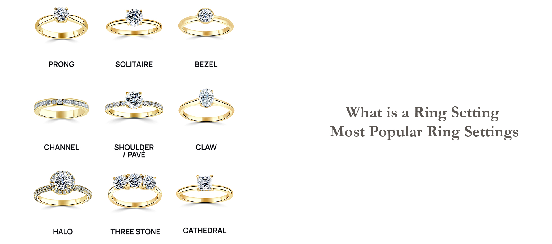 What Is A Ring Setting?Any rings that are made are set into a metal band, now how it is set is called the ring setting. It is the way the gemstone is mounted into the band and is the key design that will affect the look, feel and value of the gemstone. There are many types of ring settings, each one with its specific pros and cons. In this blog, we will discuss the most popular ring settings to choose from. The How’s of Ring Setting Before we move on to the types of ring settings, first let's discuss the hows of it: How it's made - The setting of a gemstone ring is made of a shank and a head. The shank is the part that encircles the finger while the head is what holds the gem. How it looks - How a ring is set can highly affect how the ring looks and if you are going to choose a ring for a proposal it is essential to choose the perfect engagement ring setting. How it feels - Some frames feel lighter and have less metal while some are heavy and some are intricate and need more carefulness. How it's valued - The number of stone, and their size affects the price more....