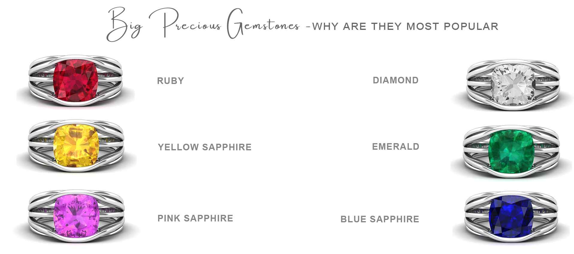 The four main precious gemstones which are traditional gemstones since ancient times are rubies, emeralds, sapphires and diamonds. These gemstones are also the most valuable and sought-after as well as the most expensive gemstones in the world. They are typically gems that are loved for their colour, beauty, powers and significance. You may have seen these gems highly in crowns, jewels, weaponry, thrones, and many jewellery of rich people. These jewels were the symbol of royalty and have been used for centuries. In this blog, we will discuss what are precious stones, the names of Big 4 gemstones, and why the Big 4 precious stones are the most popular gems. What are Precious Gemstones?Any gemstones that are see-through, that is, transparent, and faceted are considered to be precious stones....