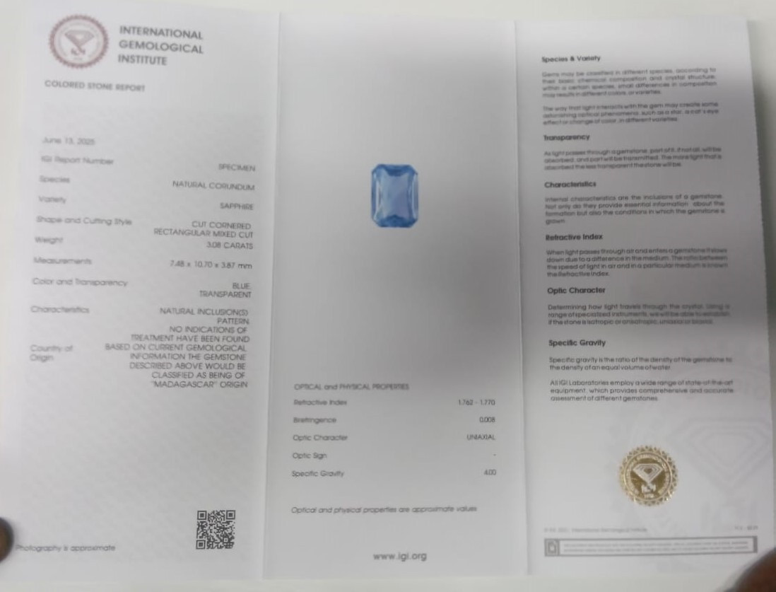 Original Natural Blue Sapphire weighing 3.08 Carat (3.42 ratti) From Madagascar ITLGR lab certified