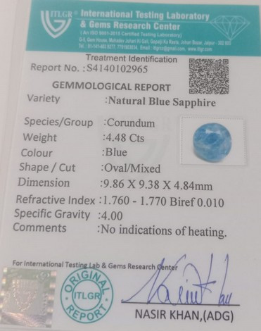 Original Natural White Sapphire weighing 4.48 Carat (4.98 ratti) From Burma ITLGR lab certified