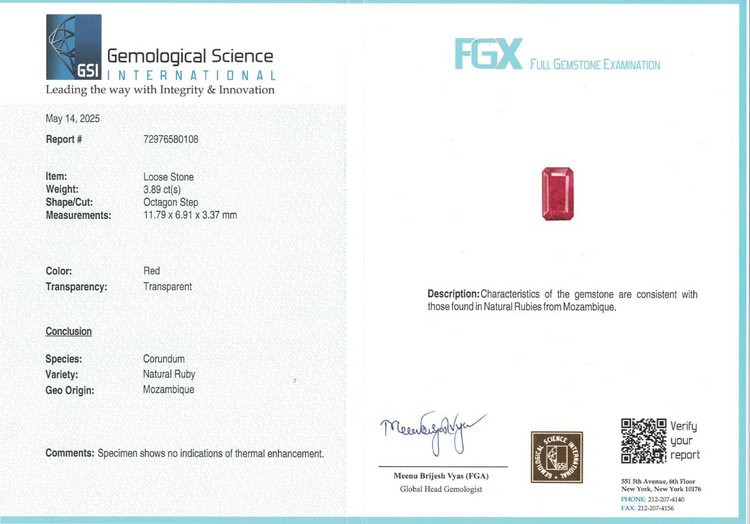 Original Natural Ruby weighing 3.89 Carat (4.32 ratti) From Mozambique GSI lab certified