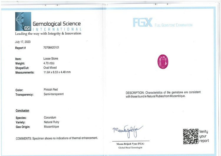Original Natural Ruby weighing 4.7 Carat (5.22 ratti) From Mozambique GSI lab certified
