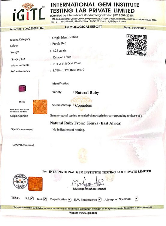 Original Natural Ruby weighing 2.28 Carat (2.53 ratti) From Kenya IGITL lab certified