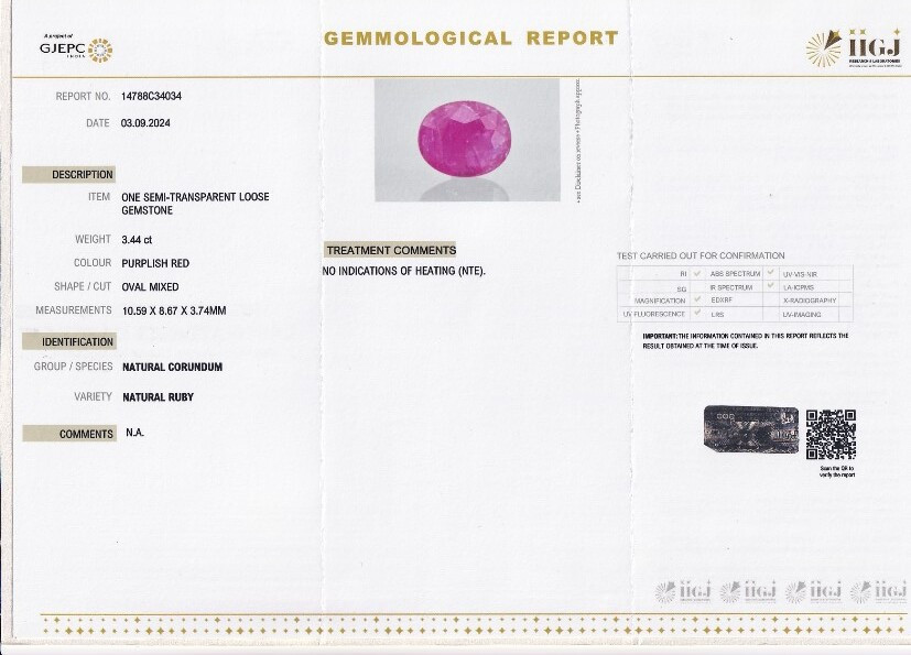 Original Natural Ruby weighing 3.44 Carat (3.82 ratti) From GJEPC lab certified