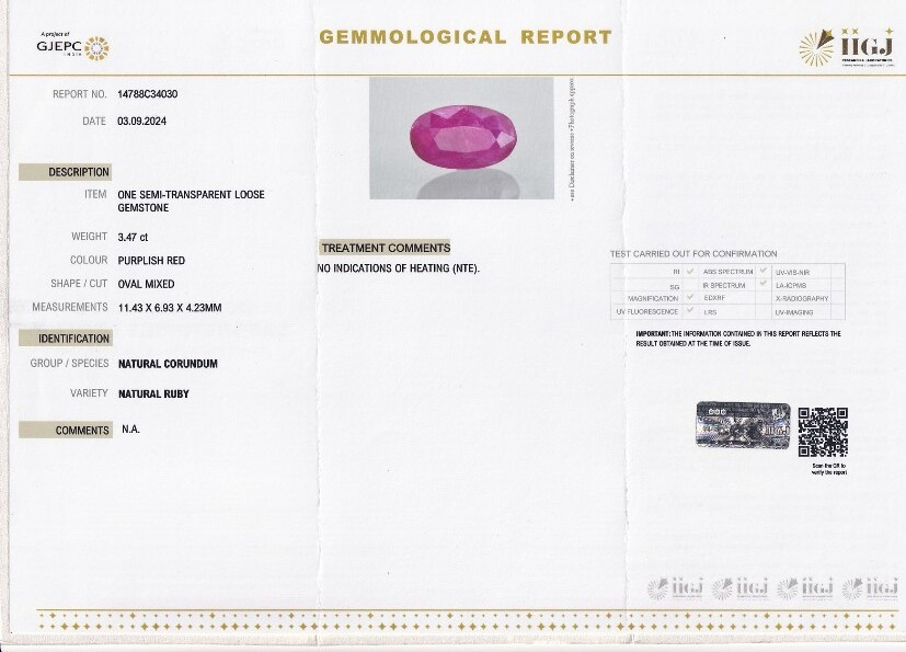Original Natural Ruby weighing 3.47 Carat (3.83 ratti) From GJEPC lab certified