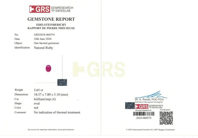 Original Natural Ruby weighing 3.65 Carat (4.06 ratti) From GRS lab certified