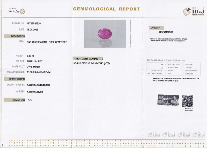 Original Natural Ruby weighing 4.14 Carat (4.60 ratti) From GJEPC lab certified