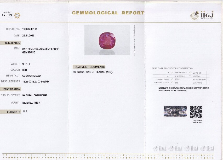 Original Natural Ruby weighing 9.1 Carat (10.11 ratti) From GJEPC lab certified