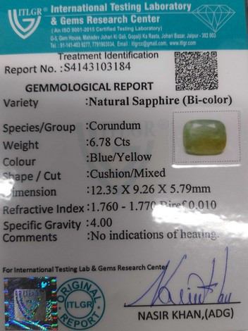 No Heat Pitambari Weighing 6.78 Carat (7.53 Ratti) ITLGR Lab Certified
