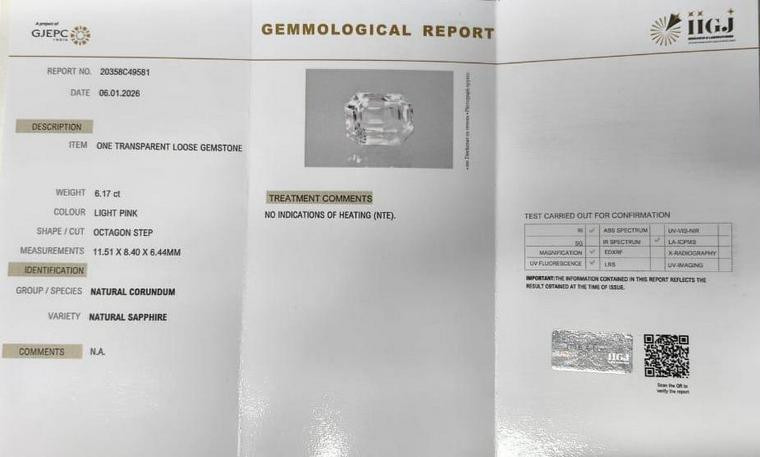 Original Natural White Sapphire weighing 6.17 Carat (6.86 ratti) From Sri Lanka (Ceylon) GJEPC lab certified