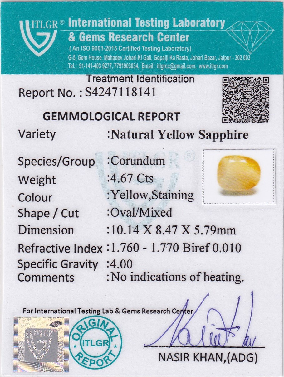 Yellow Sapphire (Pukhraj) - 4.62 Carat